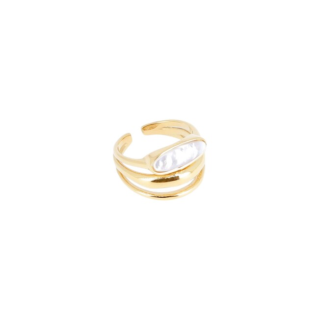 Bague Zag en acier doré, nacre et oxyde de zirconium, taille ajustable