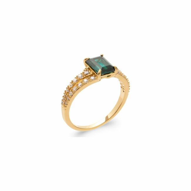 Bague en plaqué or, oxydes de zirconium et pierre synthétique