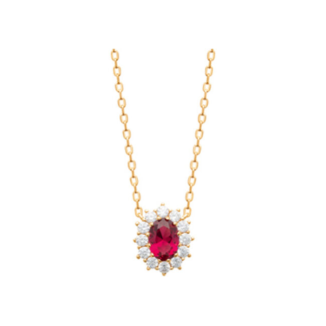 Collier en plaqué or, oxydes de zirconium et pierre synthétique, 45cm