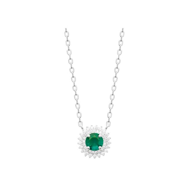 Collier en argent rhodié, oxyde de zirconium et pierre de couleur