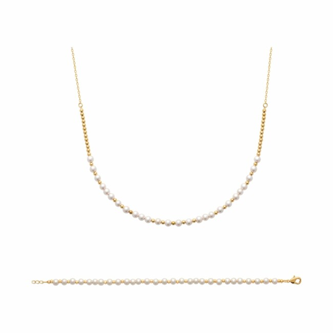 Collier en plaqué or, perle d'imitation et oxyde de zirconium