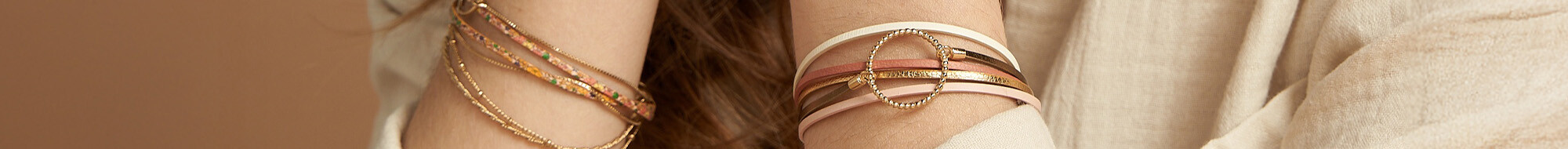 Bracelet FlowersforZoé ANNABELLE en acier doré et cuir, T2