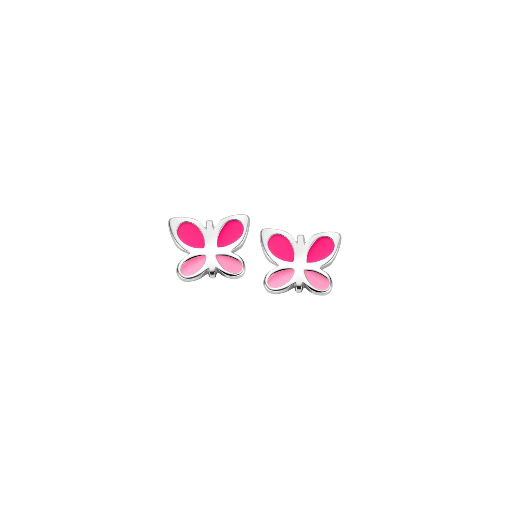 Boucles d'oreilles Orage Kids papillon en argent rhodié et émail rose Description détaillée
