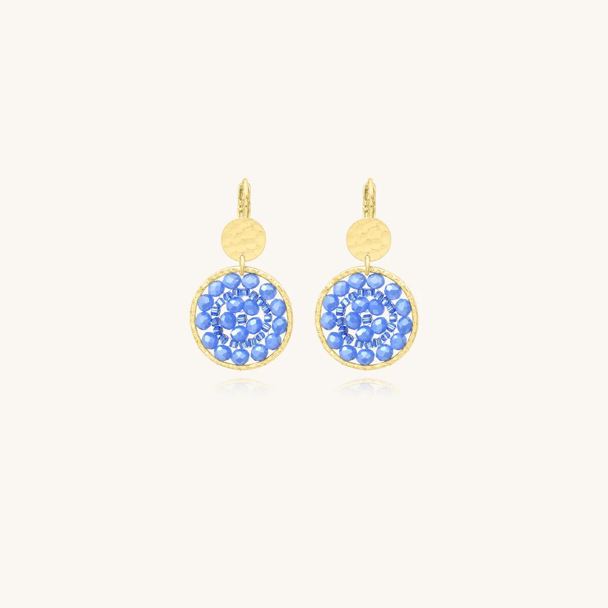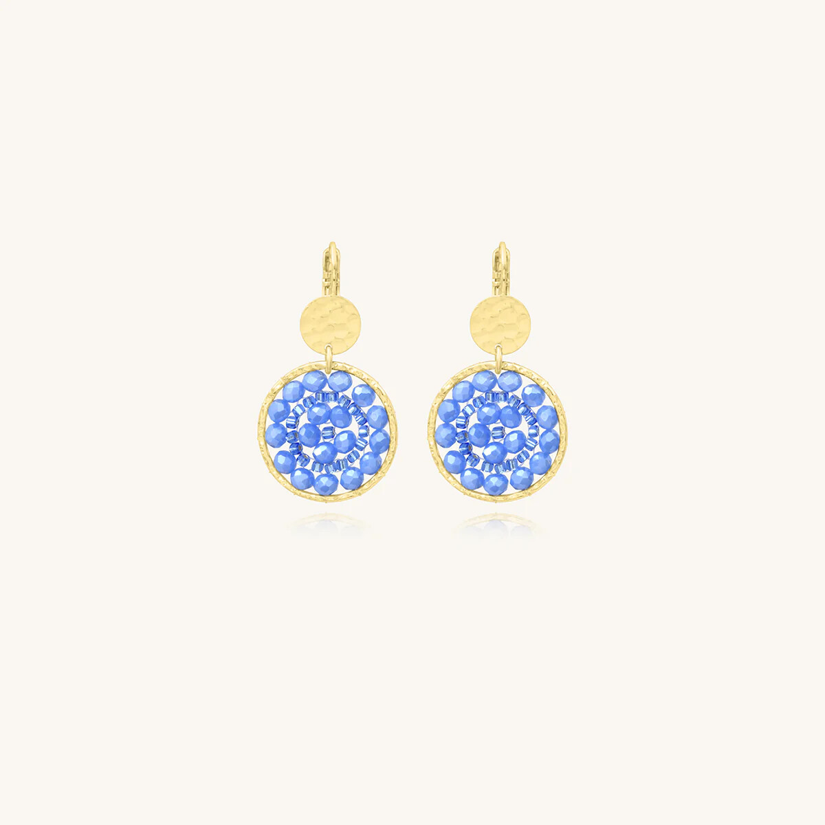 Boucles d'oreilles Sàntibé Bijoux Paradis en laiton, métal doré et perles céleste Description détaillée