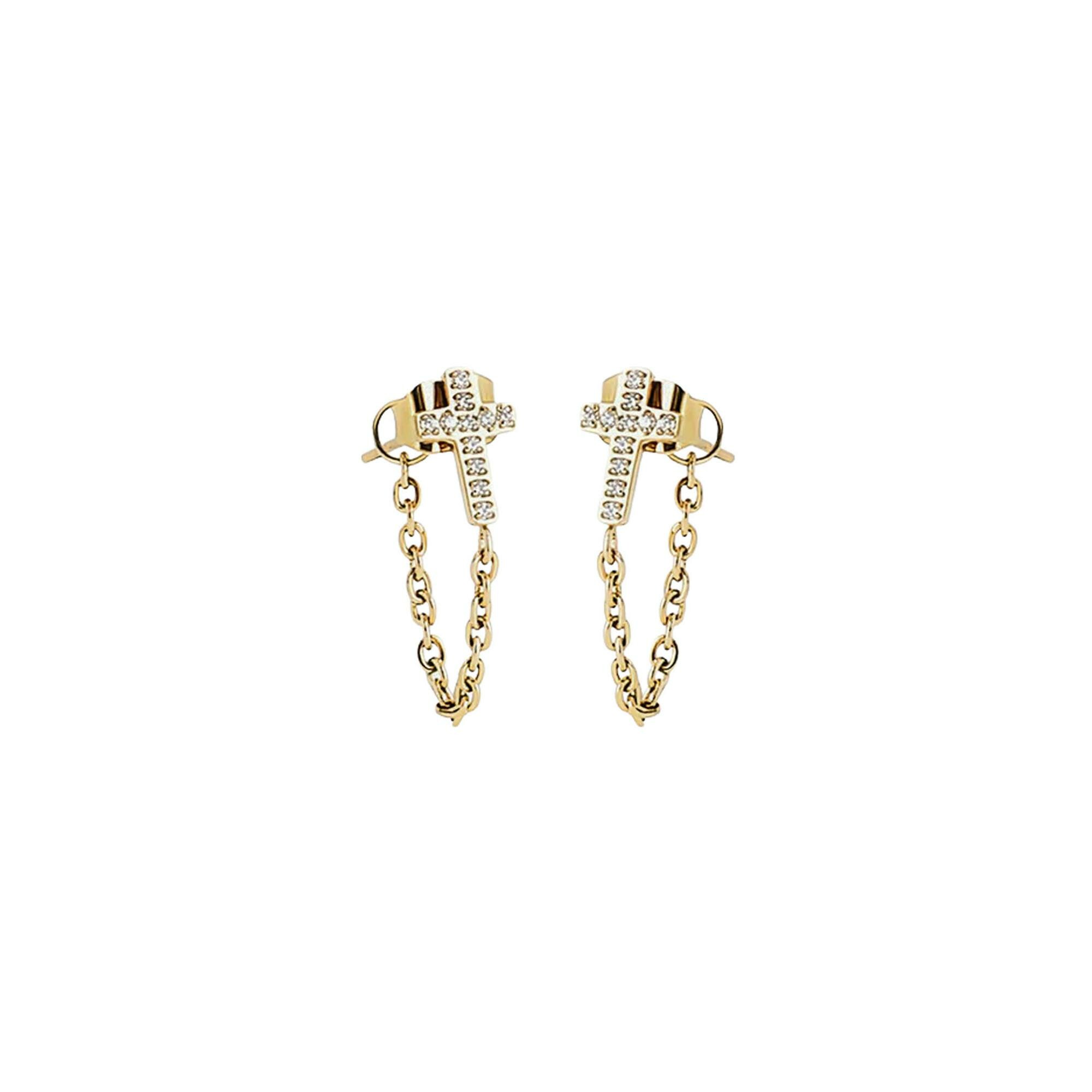 Boucles d'oreilles Zag Evangelista en acier doré et oxyde de zirconium Description détaillée