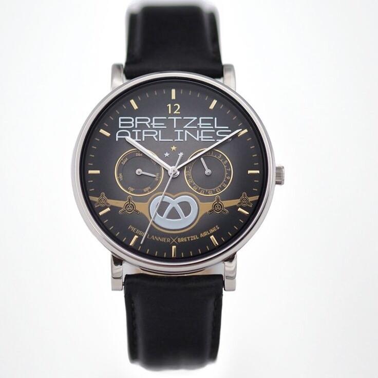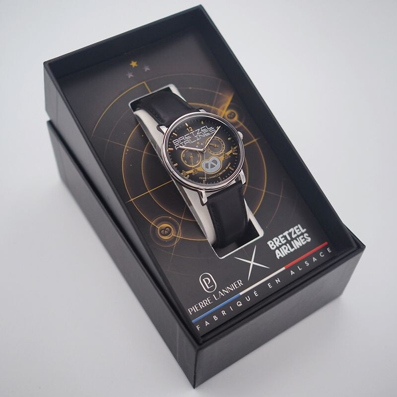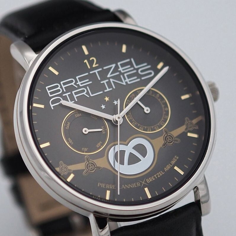 Montre en série Spéciale BRETZEL AIRLINES PIERRE LANNIER. Montre Acier - Bretzel Air Force - Bracelet Cuir Bride Acajou.Si tu te prends pour Maverick dans Top Gun, et que tu aimes prendre l'apéro,tu peux rejoindre la Bretzel Air Force !