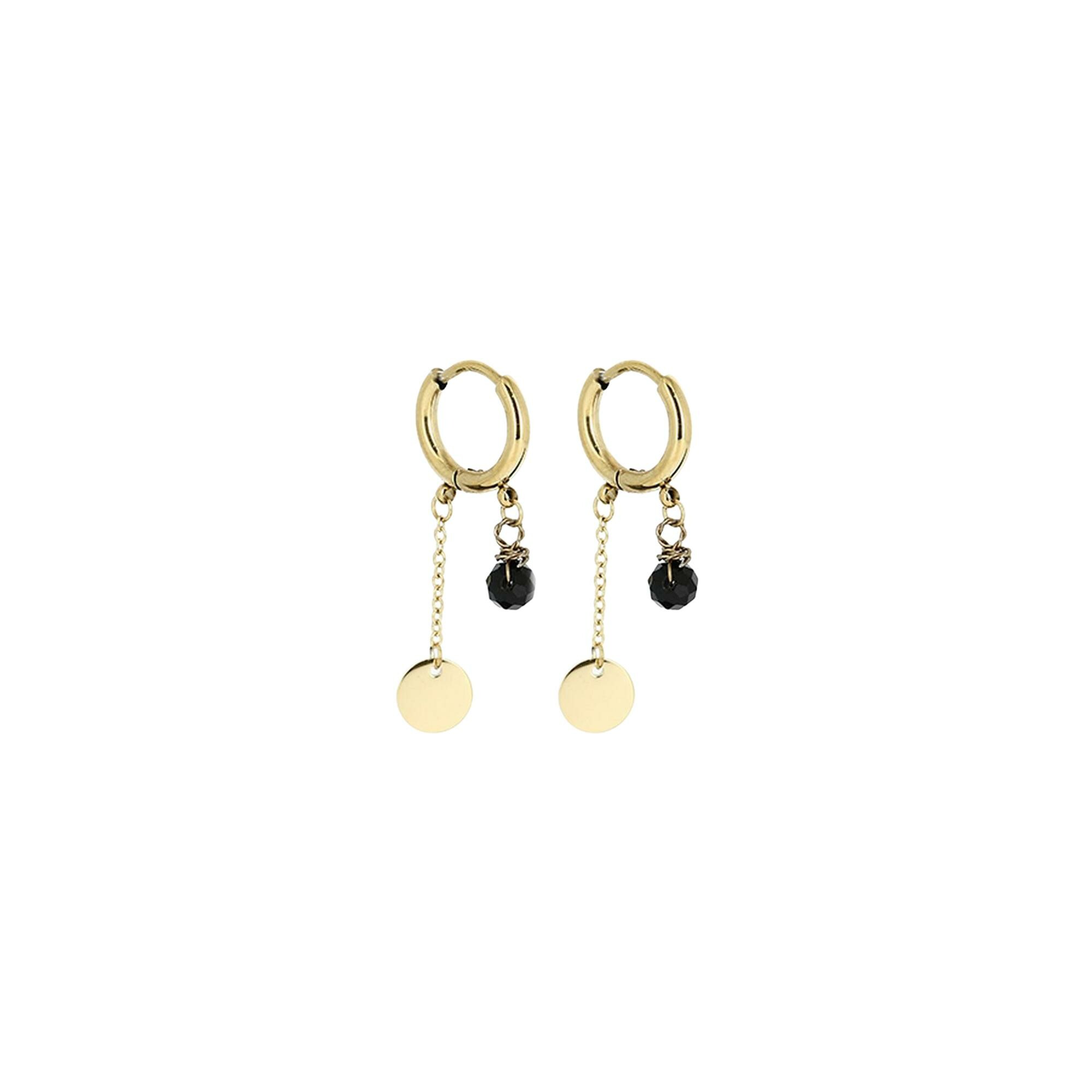 Mini boucles d’oreilles Zag en acier doré et onyx Description détaillée