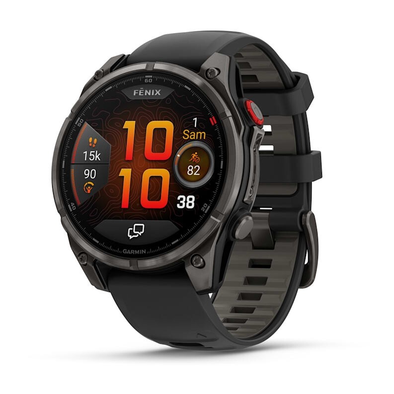 La montre connectée GPS multisports fēnix® 8 Pro marque une avancée majeure pour les coureurs, grimpeurs, adeptes de sports nautiques et tous les athlètes qui doivent rester joignables même sans téléphone. Il s'agit de la première montre connectée Garmin à intégrer la technologie inReach®, pour une connectivité satellite et LTE¹ directement au poignet. Laissez votre téléphone à la maison et passez des appels ou partagez votre position en temps réel avec LiveTrack lorsque vous avez accès au réseau LTE. Vous pouvez aussi envoyer et recevoir des messages, ou déclencher une alerte SOS interactive pendant une activité outdoor, grâce à la connexion LTE ou satellite. avec la prise en charge des messages SOS par le centre de coordination Garmin Response℠ disponible 24 h/24 et 7 j/7. Cette montre robuste propose toutes les fonctions avancées d'entraînement pour le fitness et la musculation, le suivi de la santé, la cartographie, le calcul d'itinéraires ainsi que bien d'autres fonctionnalités clés de la série fēnix® 8, auxquelles s'ajoute une large sélection d'entraînements adaptés à chaque sport. Elle intègre également un écran AMOLED lumineux de 35,56 mm (1,4″), une lunette en titane, un verre en cristal de saphir hautement résistant aux rayures et une lampe torche LED puissante. Elle offre jusqu’à 27 jours d'autonomie en mode montre connectée pour le modèle, des fonctions de plongée jusqu'à 40 mètres, un espace de stockage pour la musique, et bien plus encore.