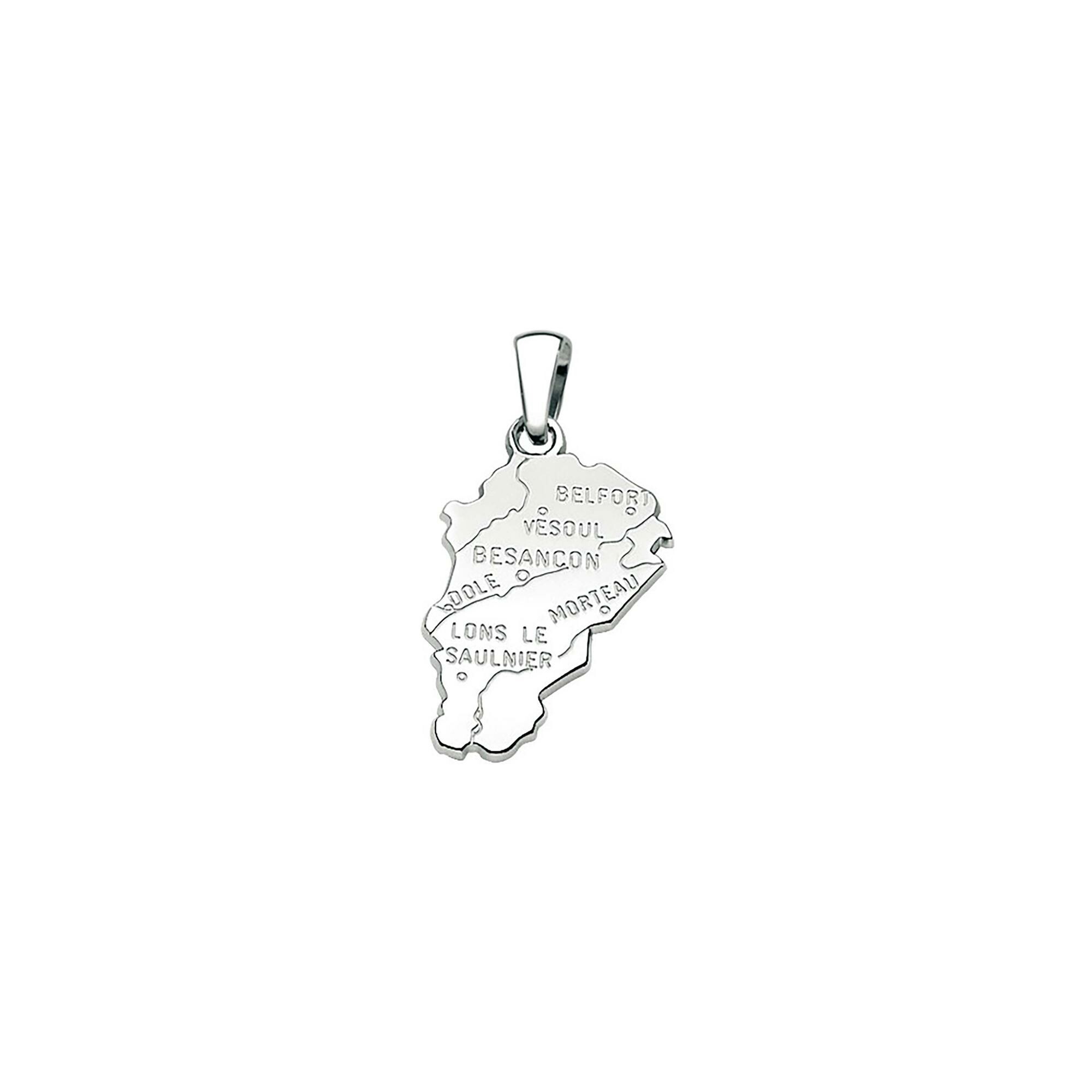 Pendentif carte Franche Comté en argent rhodié Description détaillée