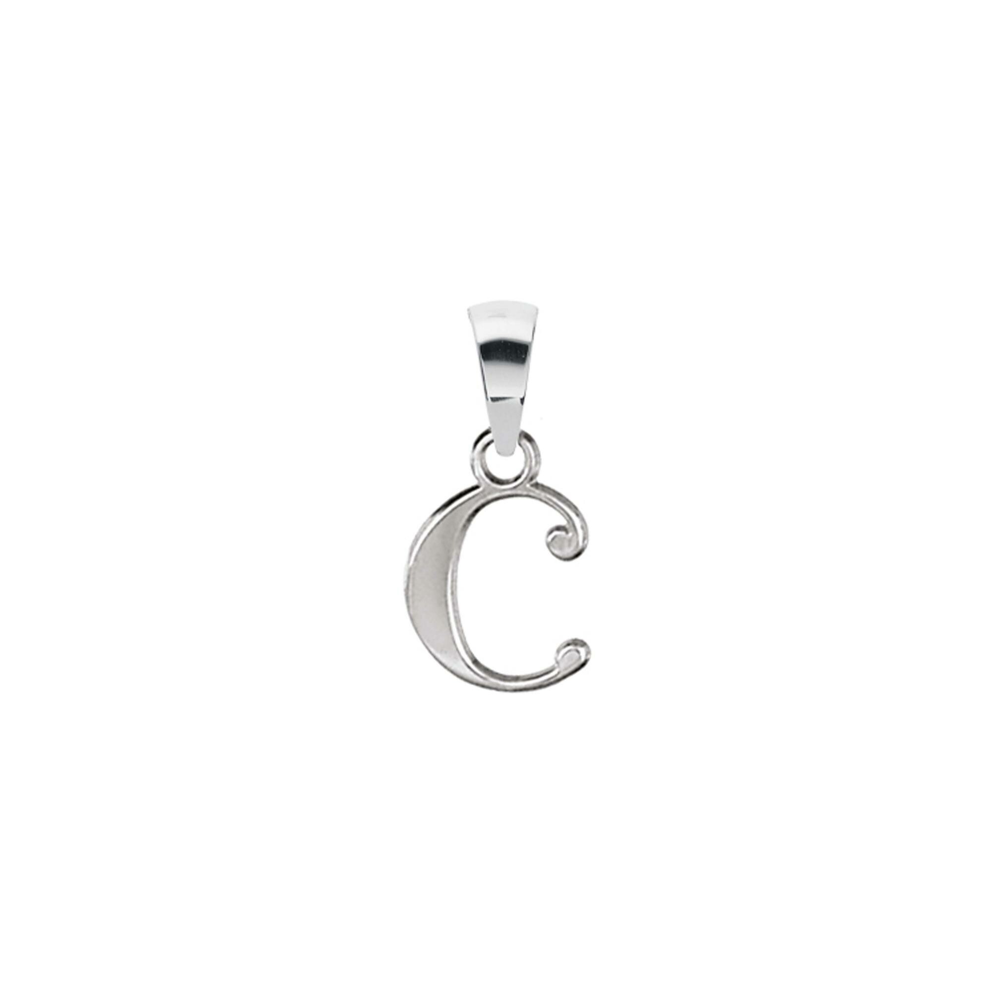 Pendentif initiale Anglaise petit modèle C en argent rhodié Description détaillée